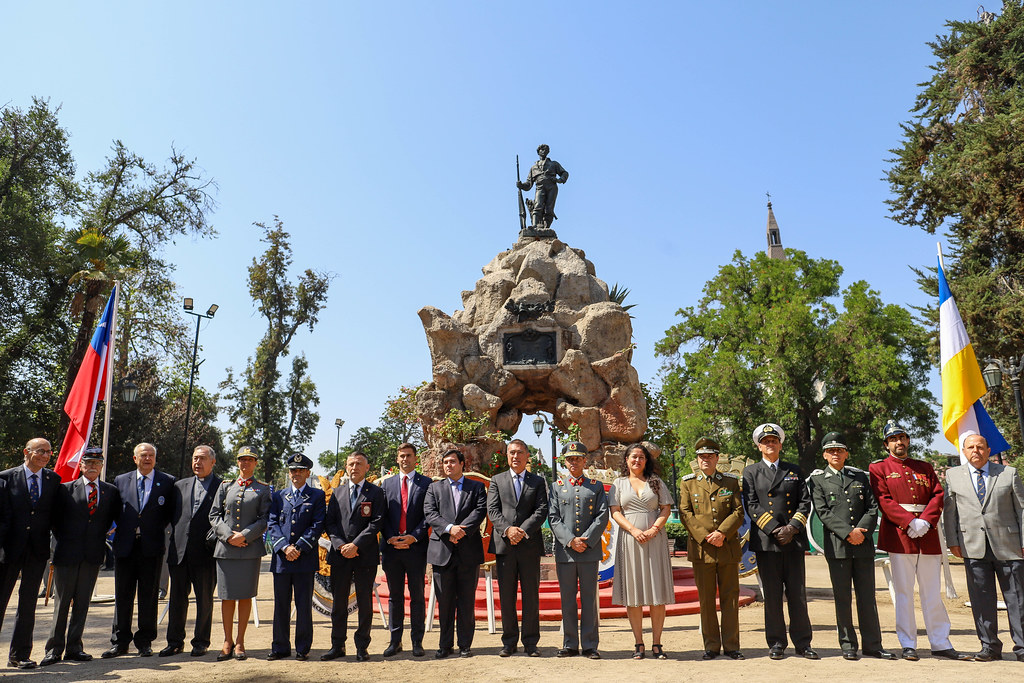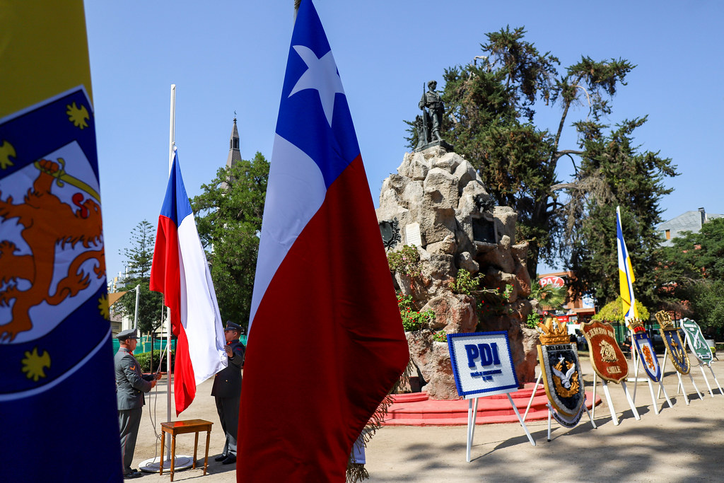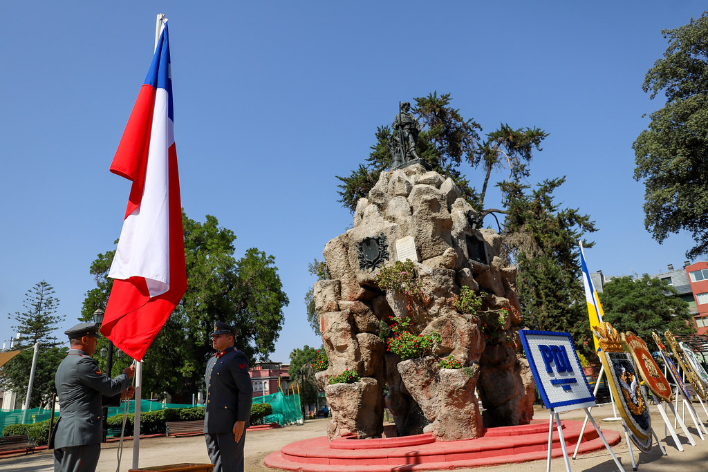 Como parte del acto solemne, se realizó el izamiento del Pabellón Nacional, la interpretación del Himno Nacional por la banda instrumental de la Escuela de Infantería, la presentación de ofrendas florales por parte del Ejército, Armada, Fuerza Aérea, Carabineros de Chile, Policía de Investigaciones y la Ilustre Municipalidad de Santiago, y un servicio religioso a cargo del capellán del Ejército, capitán Cristian Sánchez, quien efectuó una invocación y bendición de las ofrendas.