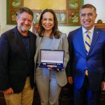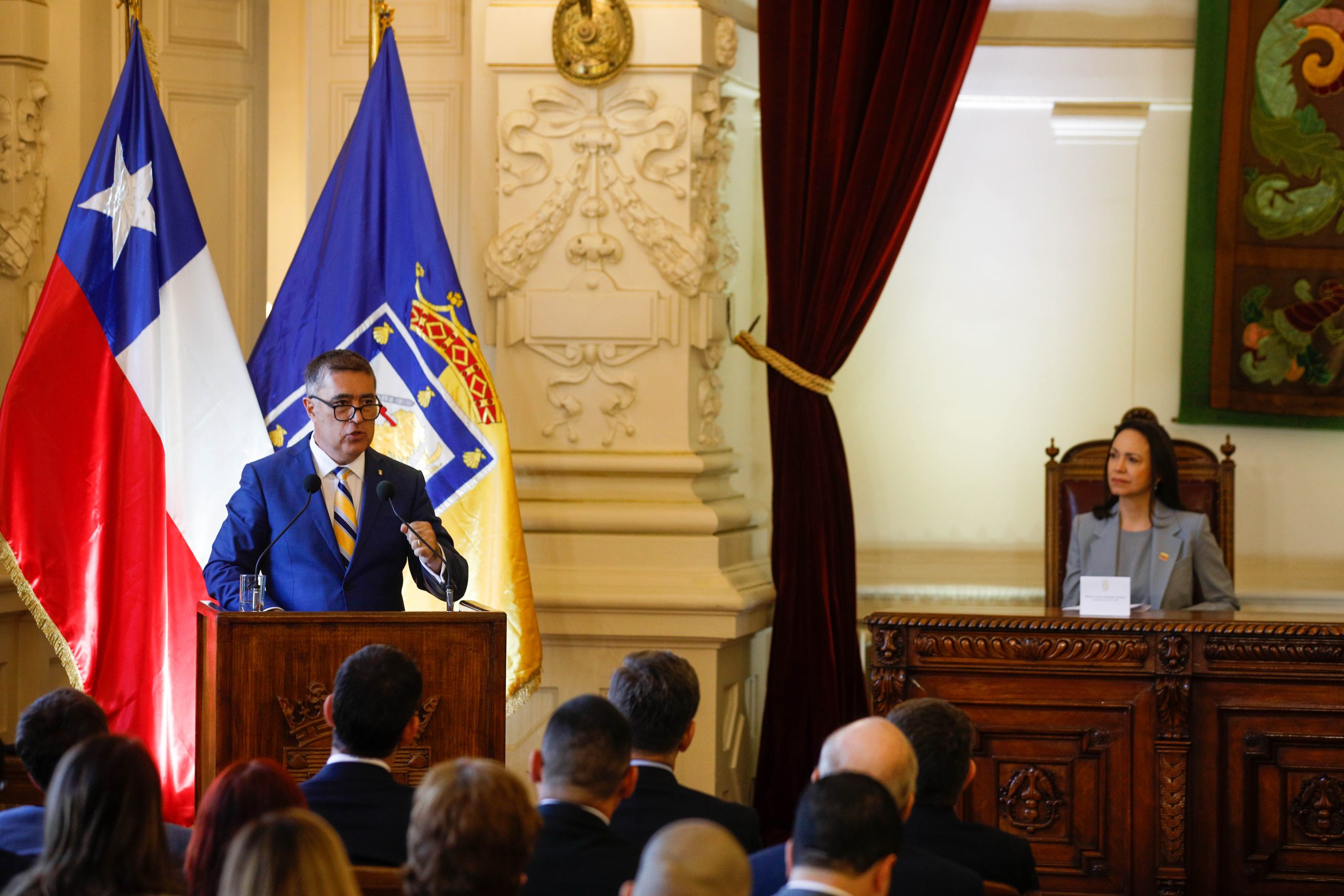 El alcalde Desbordes explicó que “cuando supimos que María Corina Machado asistiría a la ceremonia de traspaso del mando presidencial y que había escogido a Chile como el primer país latinoamericano en visitar tras su salida de Venezuela, quisimos preparar este homenaje con mucho cariño, porque es una auténtica e incansable heroína de la democracia y de los derechos humanos”.