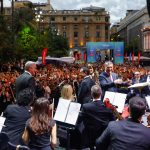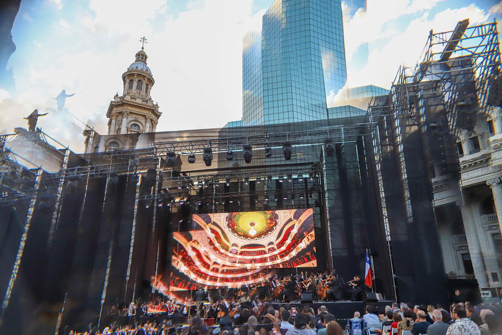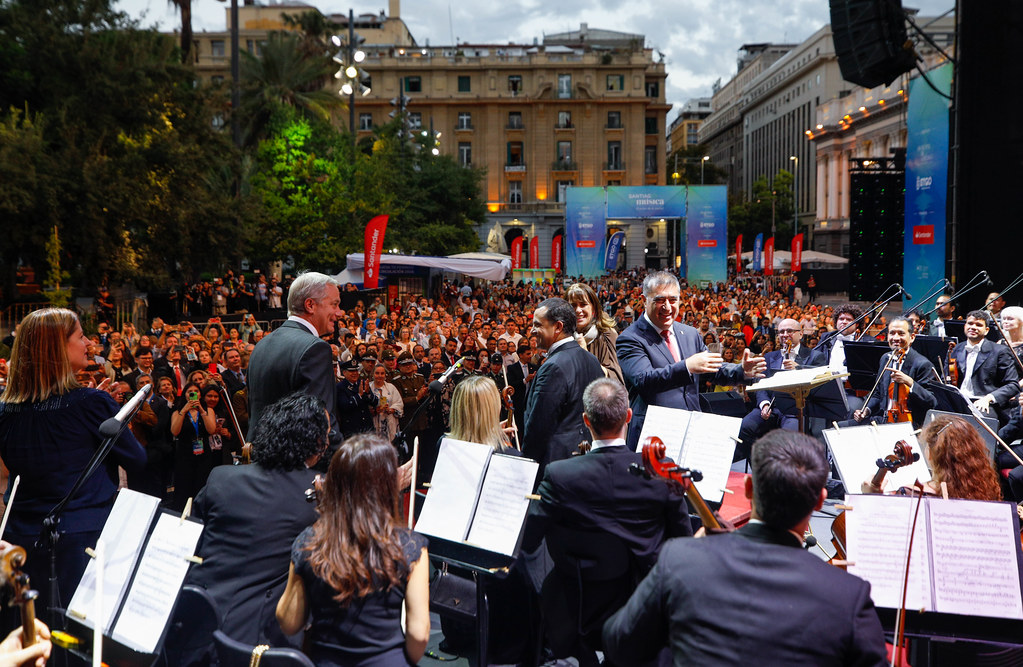 La Orquesta Filarmónica de Santiago se presentó en la Plaza de Armas ante cerca de tres mil personas, en el lanzamiento del ciclo “Santiago es Música”, iniciativa de la Municipalidad de Santiago y el Teatro Municipal que busca acercar las artes a la ciudadanía y acompañar la recuperación del centro de la capital.