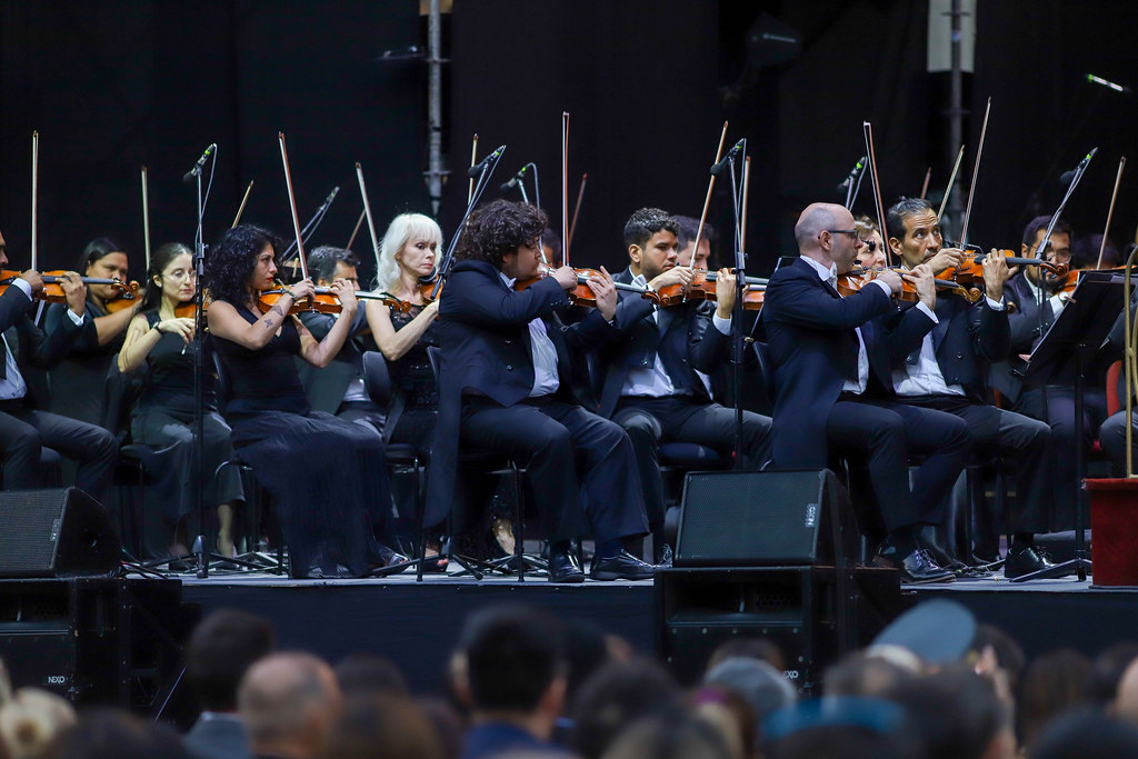 El concierto fue dirigido por el director residente de la Orquesta Filarmónica de Santiago, Pedro-Pablo Prudencio, y reunió a cerca de 90 músicos en escena, quienes interpretaron la Sinfonía n.º 9 “Del Nuevo Mundo”, una de las obras más emblemáticas del repertorio sinfónico internacional.