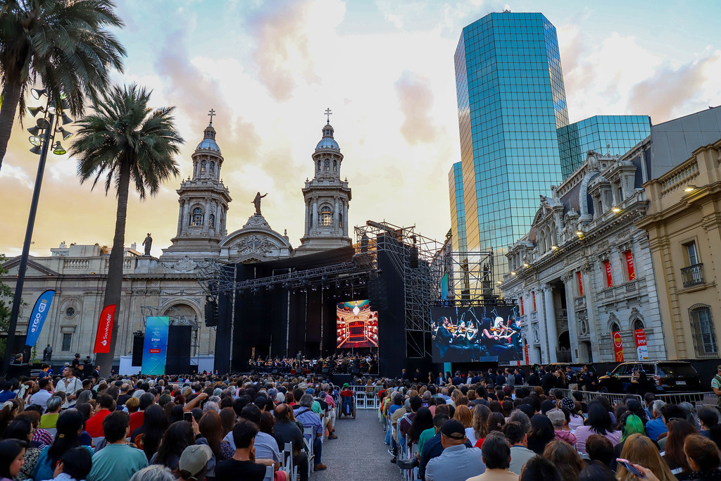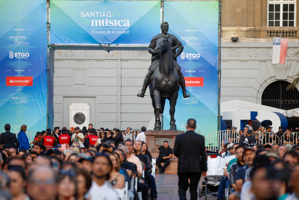 Tras 20 años de ausencia, la Orquesta Filarmónica de Santiago volvió a presentarse en la Plaza de Armas en un concierto gratuito que marcó el lanzamiento del ciclo cultural “Santiago es Música”, iniciativa impulsada por la Municipalidad de Santiago y el Teatro Municipal para acercar la música, la ópera y la danza a los espacios públicos de la comuna. La actividad reunió a cerca de tres mil personas en el corazón del centro histórico y contó con la presencia del Presidente de la República, José Antonio Kast, además de autoridades de gobierno.