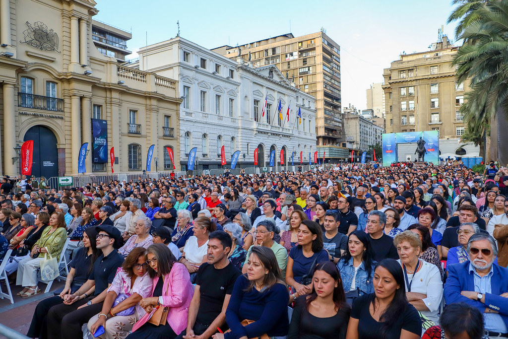 El concierto marcó el regreso de la Orquesta Filarmónica al principal espacio cívico de la capital, en una jornada que buscó reafirmar el proceso de recuperación del centro de Santiago y devolverle a la ciudad encuentros culturales abiertos a toda la comunidad.