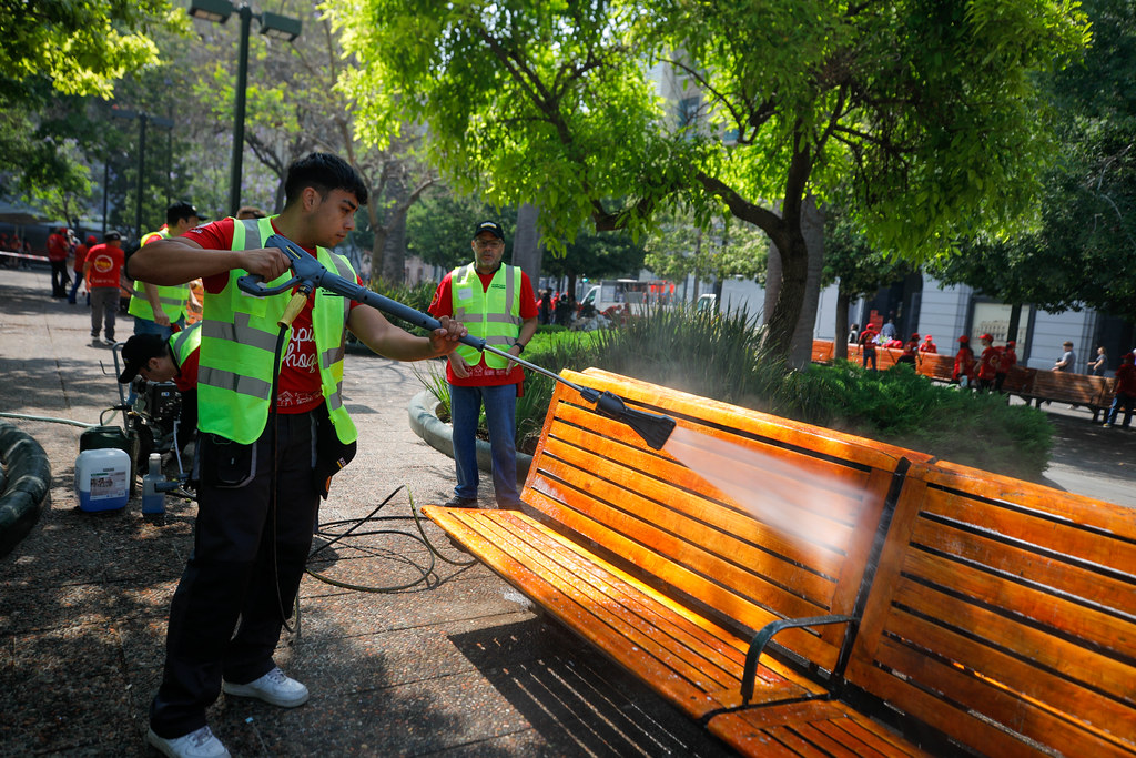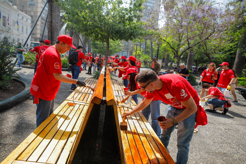 El gerente comercial de Easy Chile, Esteban Casado, resaltó que la actividad responde a un compromiso sostenido con la recuperación de espacios públicos en todo el país: “Somos más de 200 personas trabajando hoy. Estamos recuperando bancas, pintando el volumétrico de Santiago y aportando a mejorar la calidad de vida de miles de personas que usan la plaza cada día”.