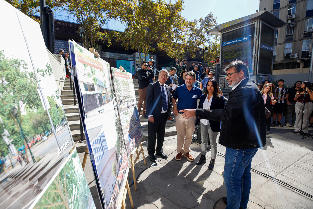 En la salida sur del metro Universidad Católica, el alcalde de Santiago, Mario Desbordes, el gobernador de Santiago, Claudio Orrego, y la decana de la Facultad de Arquitectura de la Pontificia Universidad Católica, Magdalena Vicuña, dieron a conocer los nuevos trabajos que se están realizando en cinco puntos del eje Alameda: el Portal Edwards, la Plazoleta Gratitud Nacional, la salida sur del Metro Universidad Católica, la Plaza Tucapel Jiménez y la Plaza Oriente, entre Jaime Eyzaguirre y la Plaza de Carabineros.