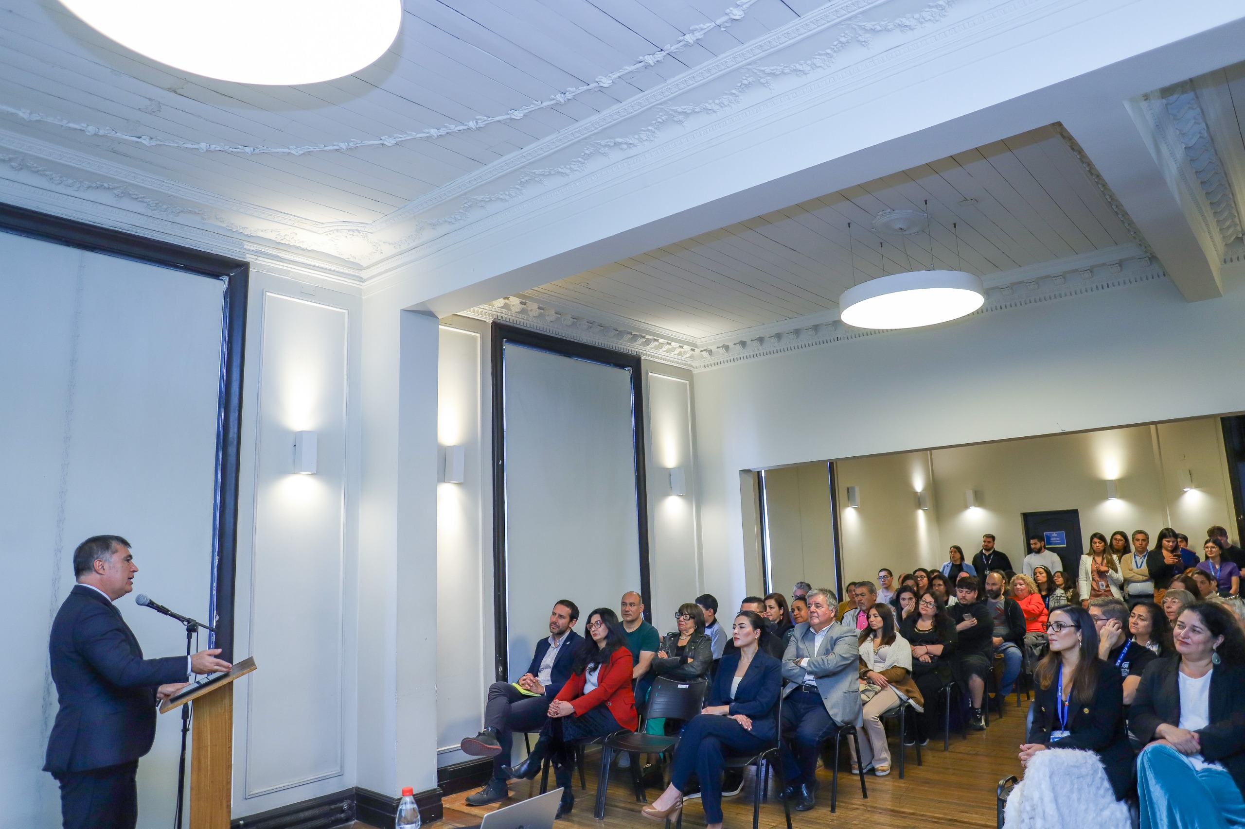 Durante la jornada —realizada en el Palacio Álamos— se presentaron los resultados 2025 del programa: 93% de asistencia promedio en procesos formativos, 60% de avance en formalización de emprendimientos y 26% de participantes integradas como proveedoras de cafeterías en Santiago.