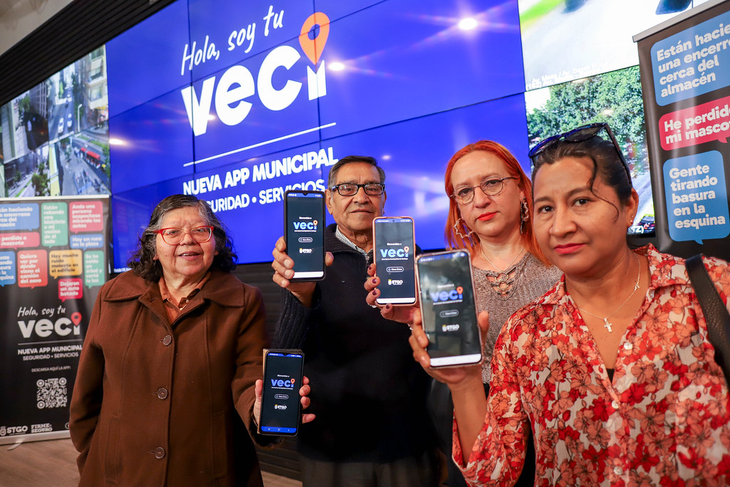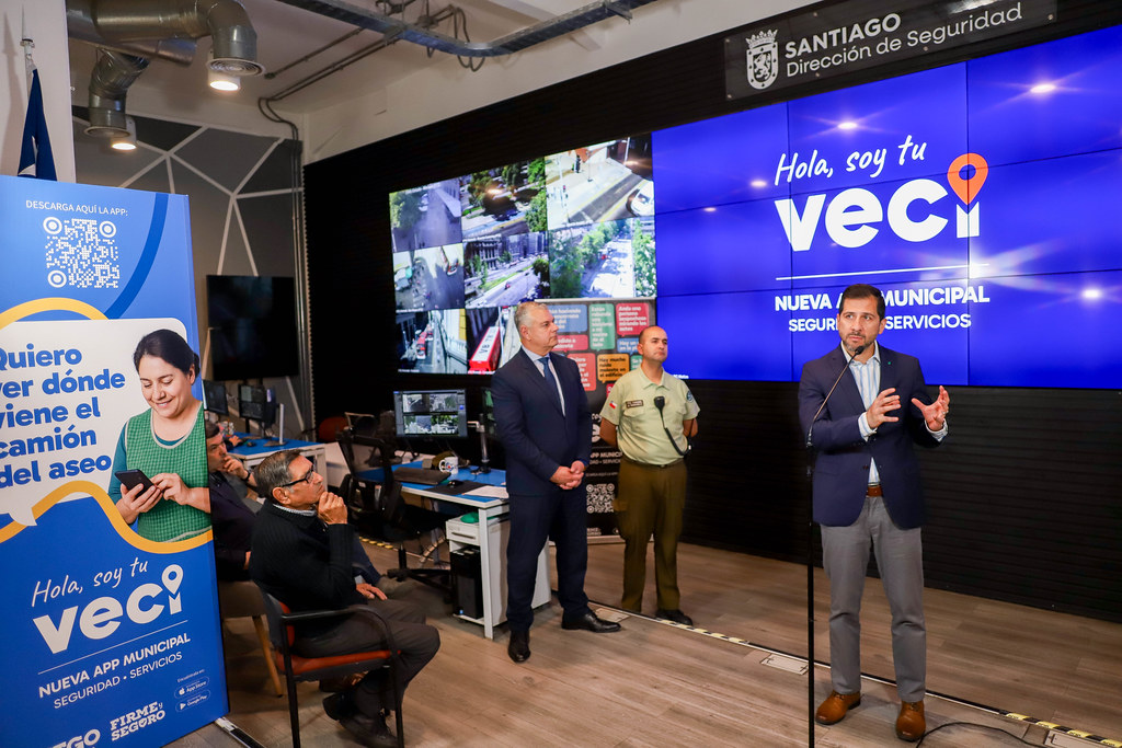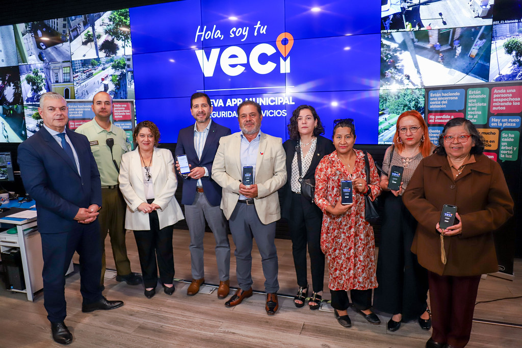 La Municipalidad de Santiago presentó este martes la nueva aplicación VECI STGO, la primera app municipal en Chile diseñada para integrar en un solo lugar servicios de seguridad, reportes vecinales, notificaciones por barrio y, próximamente, trámites municipales y prestaciones de salud. El lanzamiento estuvo encabezado por el Administrador Municipal, Jorge Núñez, el director de Prevención y Seguridad Comunitaria, Arturo Urrutia, el Teniente Coronel Hugo Troncoso, comisario de la Primera Comisaría de Santiago, y representantes de unidades municipales y organizaciones vecinales.