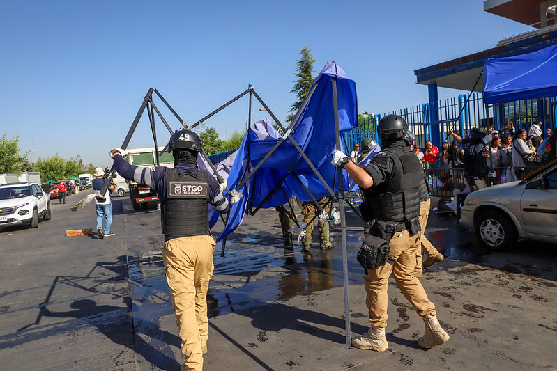 El procedimiento fue coordinado por la Dirección de Seguridad de Santiago, la Delegación Presidencial Metropolitana, con apoyo de Carabineros de Chile y personal de Control de Orden Público, permitiendo retirar estructuras y toldos utilizados para la venta ilegal de productos en la vía pública.