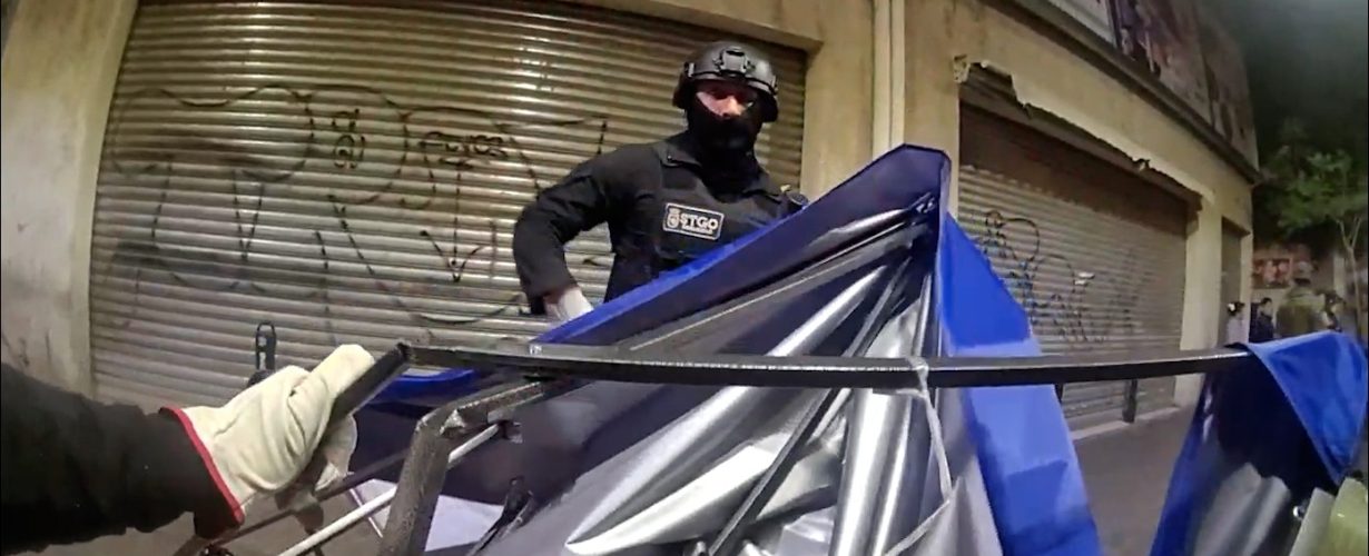 Durante la madrugada de este martes, entre las 01:28 y las 02:18 horas, la Municipalidad de Santiago y Carabineros de Chile ejecutaron un operativo conjunto en el Barrio Meiggs para retirar toldos azules, estructuras metálicas y especies asociadas al comercio informal instaladas sin autorización en las calles Exposición, Sazié, Conferencia, San Alfonso y Bascuñán Guerrero.