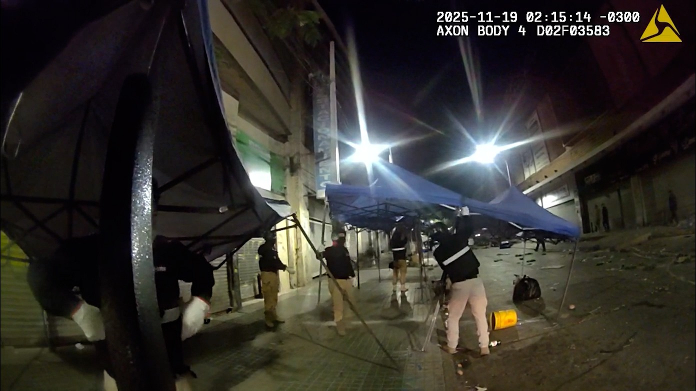 Durante el operativo participaron aproximadamente 85 funcionarios policiales, quienes desplegaron dispositivos Ariete, un equipo Centauro y 10 radiopatrullas. No hubo funcionarios municipales ni policiales lesionados. Todos los toldos, mesas y estructuras quedaron decomisados para destrucción o registro de incautación, según su estado.