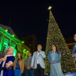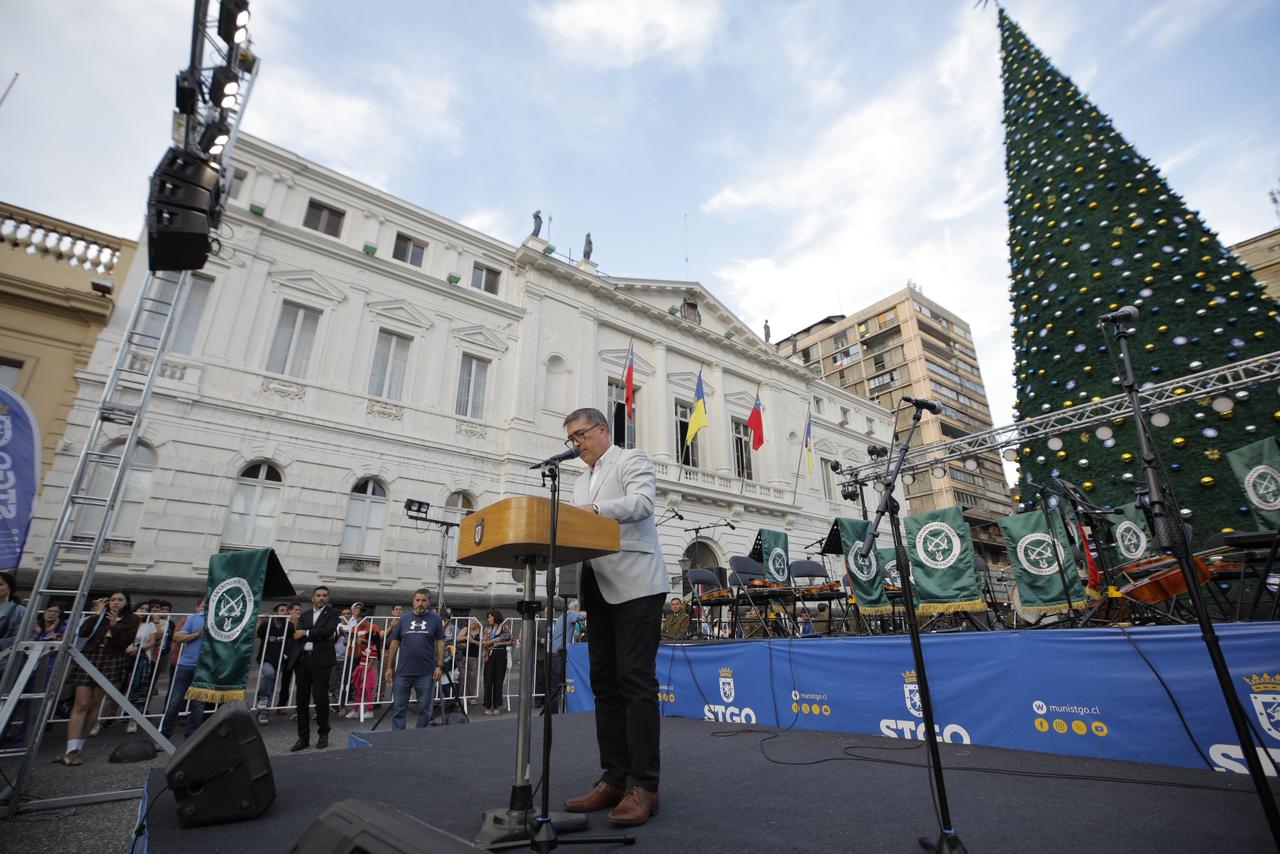 En esa línea, el jefe comunal explicó que “hemos logrado el apoyo de una empresa privada —en este caso, el Dr. Simi—para instalar este árbol de Navidad que probablemente sea el más grande de Chile y un remozado pesebre en la Plaza de Armas. Porque también queremos retomar todas estas tradiciones que convocan, que unen, que yo siento que a la mayoría de las personas les gustan. Y esto está quedando demostrado con las filas de vecinas y vecinos sacándose fotos con el árbol. Vamos a instalar iluminación en las palmeras, cambiamos la iluminación de los frontis; al menos la Plaza de Armas va a estar entretenida y navideña, y eso nos gusta mucho y nos parece que calza perfecto con el proyecto que estamos liderando junto con la Cámara de Turismo y Comercio de Santiago, Casco Histórico, TUCHS, y la Cámara Nacional de Comercio, que es el concurso de vitrinas”.