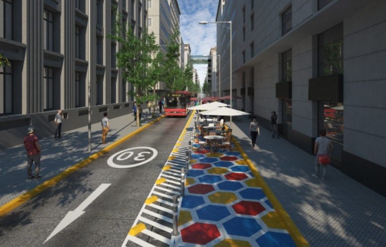 La autoridad comunal subrayó además que la iniciativa no transformará Bandera en una vía convencional. “No vuelve a ser el Bandera que todos conocimos con autos y micros compitiendo. Este es un concepto moderno, como en Ámsterdam, donde el tranvía eléctrico circula por el medio de paseos peatonales. La mayoría de los buses serán eléctricos y de alta norma ambiental, y estamos incorporando medidas de seguridad para garantizar un entorno seguro para peatones y comerciantes”, agregó.