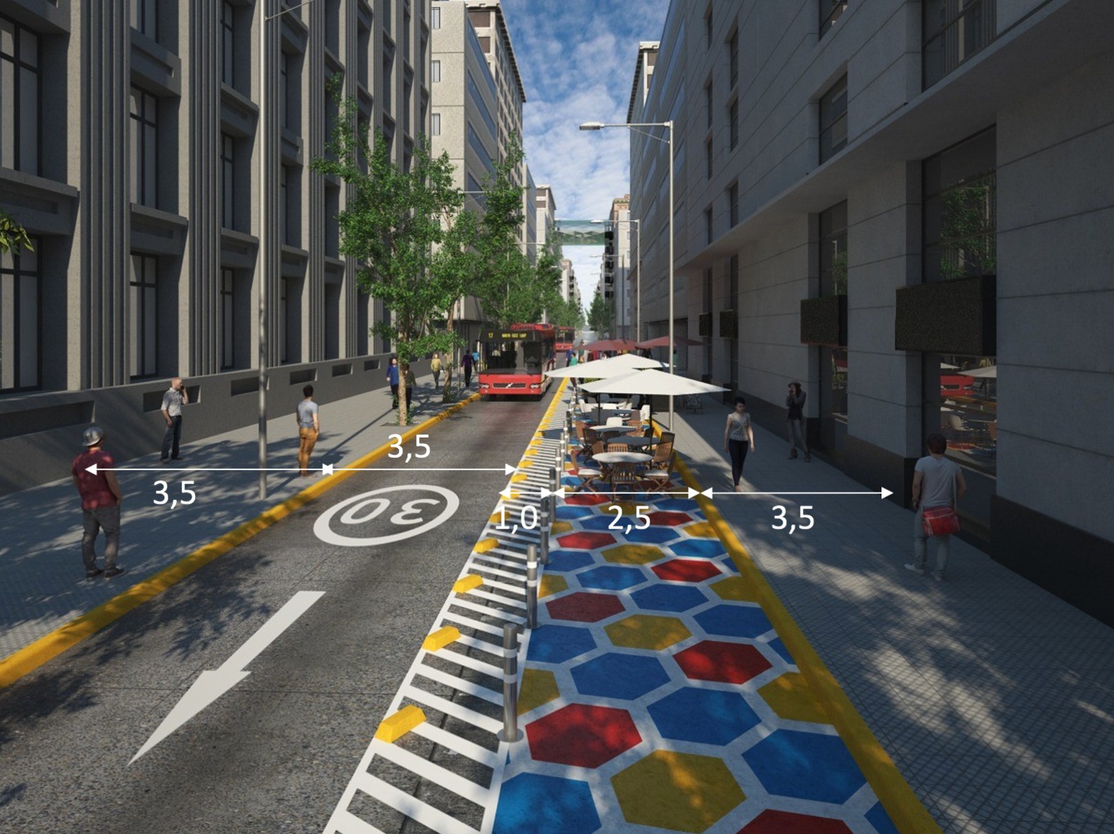 El proyecto busca mejorar la conectividad norte-sur de la capital y revitalizar el centro histórico. La circulación será exclusiva para buses Red, en su mayoría eléctricos, por una pista de 3,5 metros de ancho, con velocidad máxima de 30 km/h y trazado en zigzag en ciertos tramos. Esto permitirá mantener espacios peatonales, terrazas gastronómicas y mobiliario urbano.